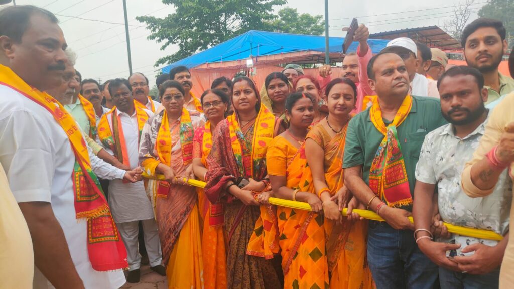 इस रथ यात्रा में मुख्य अतिथि के रूप में महिला बाल विकास मंत्री श्रीमती लक्ष्मी राजवाड़े जी, प्रेम नगर विधायक श्री भूलन सिंह मरावी जी, सरगुजा जिला के सांसद महोदय चिंतामणि महाराज जी, भरतपुर विधायक श्रीमती रेणुका सिंह जी, कलेक्टर महोदय श्री एस. जयवर्धन जी, SSP श्री प्रशांत कुमार ठाकुर, बीजेपी अध्यक्ष श्री मुरलीधर सोनी जी इशरत यात्रा में उपस्थित रहे साथी बीजेपी के अन्य नेता मंत्री अधिकारी विश्रामपुर के वरिष्ठ अधिकारी और नेता, गम श्री अजय सिंह जी भी उपस्थित रहे। जिसमें सभी का तिलक लगाकर स्वागत किया और सभी अधिकारी नेता मंत्रियों ने एक साथ मिलकर प्रेम भाव के साथ पूजा किया और रथ यात्रा में रात को खींचकर यात्रा का शुभारंभ किया। जिसमें श्रीमती लक्ष्मी राजवाड़े मैडम ने सभी श्रद्धालुओं से मिलकर बातचीत की और सभी श्रद्धालुओं के साथ नेतृत्व किया।