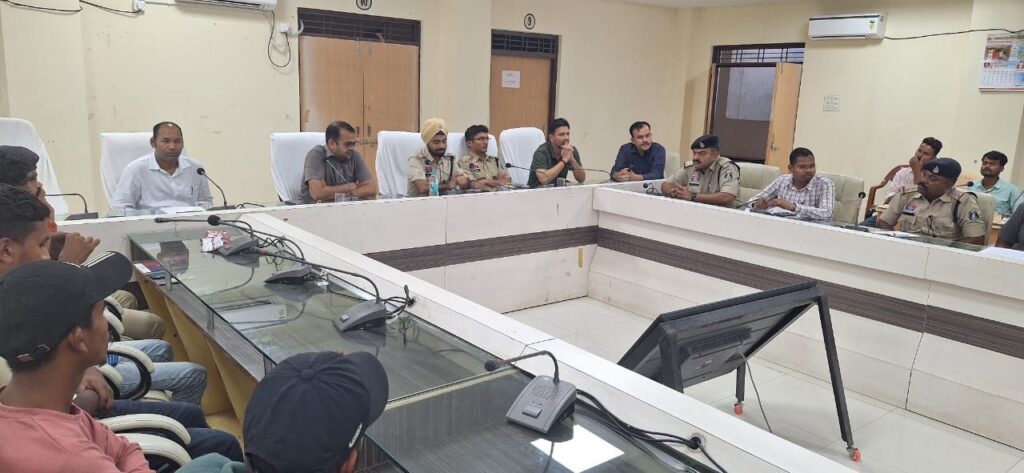 अम्बिकापुर 03 सितम्बर 2025/ आगामी गणेश विसर्जन एवं ईद-ए-मिलाद पर्व को शांति और सौहार्दपूर्ण वातावरण में संपन्न कराने हेतु कलेक्ट्रेट सभाकक्ष में आज डीजे संचालकों की बैठक आयोजित की गई। बैठक में अपर कलेक्टर श्री सुनील नायक, अतिरिक्त पुलिस अधीक्षक श्री अमोलक ढिल्लों, एसडीएम श्री फागेश सिन्हा, तहसीलदार श्री उमेश बाज, टीआई सहित पुलिस एवं प्रशासन के अधिकारी तथा डीजे संचालकगण उपस्थित थे।