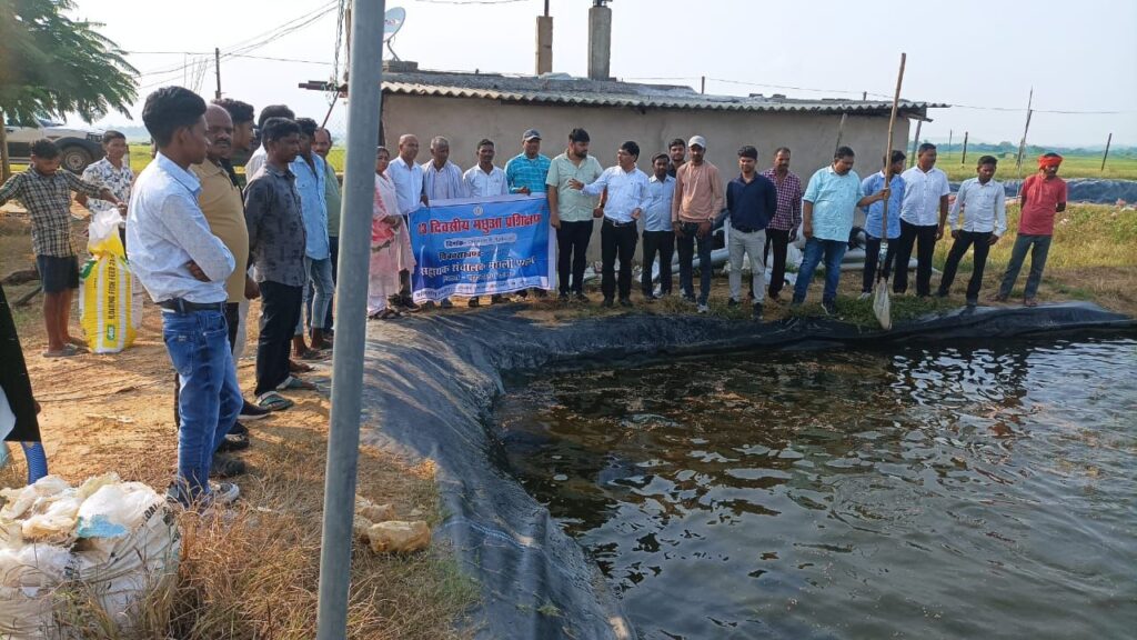 कार्यक्रम का संचालन श्री एम० एस० सोनवानी, सहायक संचालक मछली पालन जिला सूरजपुर के द्वारा किया गया। उनके द्वारा कार्यक्रम की रूपरेखा एवं प्रशिक्षण के उद्देश्य के बारे में अतिथियों एवं मत्स्य कृषकों को विस्तारपूर्वक बताया गया एवं विभागीय योजनाओं की जानकारी दी गई साथ ही साथ मछली पालन में नई तकनीकों जैसे पौंड लाईनर, RAS, झींगा पालन के बारे में भी जानकारी दिया गया। मछली बीज उत्पादन एवं संवधर्न से संबंधित जानकारी सुधाकर बिसेन, सहायक मत्स्य अधिकारी के द्वारा बताई गई। मछली बीज संचयन , परिवहन, एवं प्रबंधन के बारे में निलेश साहू मत्स्य निरीक्षक प्रतापपुर के द्वारा कृषकों को जानकारी दी गई। मछलियों में रोगों के कारण और निदान से संबंधित जानकारी सनाजीत घोरोई एरिया सेल्स मैनेजर के द्वारा दी गई । प्रशिक्षण में उपस्थित चयनित 03-03 मत्स्य कृषकों को आइस बॉक्स एवं जाल का वितरण भी किया गया। कार्यक्रम पश्चात कृषकों को प्रगतिशील मत्स्य कृषक नरेंद्र सिंह के निजी मछली फार्म का भ्रमण कराया गया जहां उनके द्वारा पौंड लाईनर में मछली पालन का कार्य किया जा रहा है।