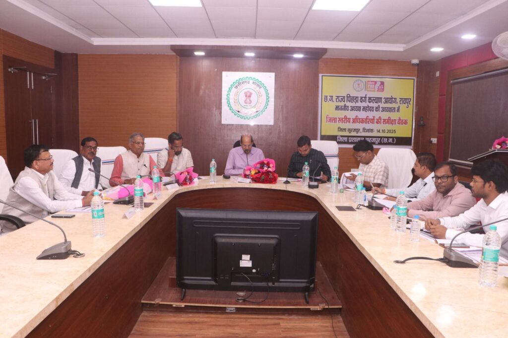 सूरजपुर/14 अक्टूबर 2025 आज छत्तीसगढ़ पिछड़ा वर्ग कल्याण आयोग, रायपुर के अध्यक्ष श्री आर.एस. विश्वकर्मा तथा सदस्यगण श्री यशवंत सिंह वर्मा, श्री बलदाऊ राम साहू, श्री हरिशंकर यादव एवं श्री कृष्णा गुप्ता के द्वारा कलेक्ट्रेट सभाकक्ष में जिले के विभागीय अधिकारियों की समीक्षा बैठक आयोजित की गई।