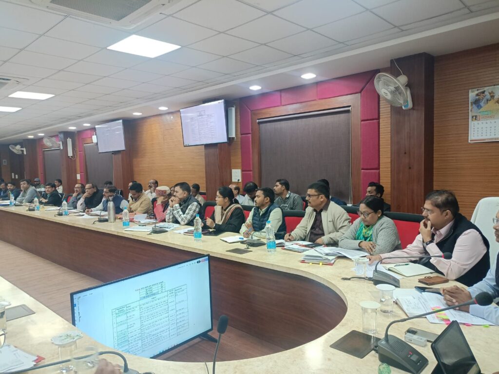 सूरजपुर/18 नवंबर 2025/ कलेक्टर श्री एस. जयवर्धन ने आज कलेक्ट्रेट सभा कक्ष में समय सीमा की बैठक लेकर विभागीय कार्यो की गहन समीक्षा की गई। उन्होने लंबित प्रकरणों के त्वरित व नियमानुसार निराकरण के निर्देश दिये और सभी को तय सीमा समय में पूर्ण करने की बात कही। बैठक में धान खरीदी की तैयारियों की समीक्षा की गई एवं संबंधितों को आवश्यक दिशा निर्देश दिये गयें। उन्होंने सुचारू एवं समयबद्ध धान खरीदी के लिए सतत मॉनिटरिंग के निर्देश दियें। खाद्य अधिकारी से कटे हुए टोकन व उपार्जन केंद्रों में खरीदें गये धान की अद्यतन स्थिति की जानकारी ली गई। इसके साथ ही उन्होने धान खरीदी से जुड़ी सभी व्यवस्थाओं बारदाना उपलब्धता, तौल-कांटा व्यवस्था, परिवहन सुविधा, गोदाम क्षमता, सुरक्षा प्रबंधन, आईटी-सुविधाएँ, किसानों हेतु पेयजल एवं प्रतीक्षालय आदि व्यवस्थाओं की विस्तृत समीक्षा की गई।