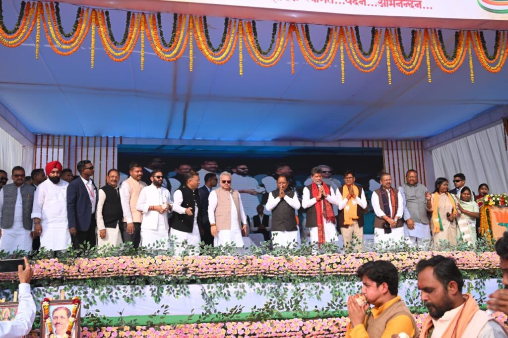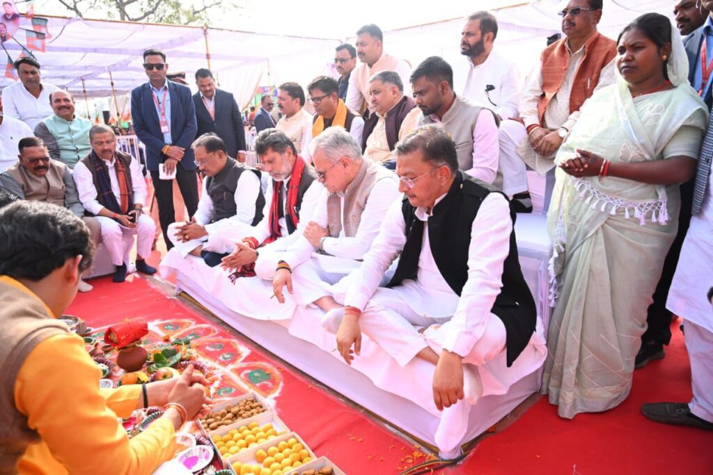 अंबिकापुर । आज सरगुजा भाजपा के नवीन कार्यालय का भूमि पूजन कार्यक्रम स्थानीय राजमोहिनी भवन परिसर के पीछे मुख्यमंत्री विष्णुदेव साय के मुख्य आतिथ्य , भाजपा प्रदेश अध्यक्ष किरण सिंह देव, भाजपा क्षेत्रीय संगठन मंत्री अजय जामवाल, वित्तमंत्री ओ पी चौधरी एवं संस्कृति एवं पर्यटन मंत्री राजेश अग्रवाल के विशिष्ट आतिथ्य तथा भाजपा जिलाध्यक्ष भारत सिंह सिसोदिया की अध्यक्षता में सम्पन्न हुआ ।